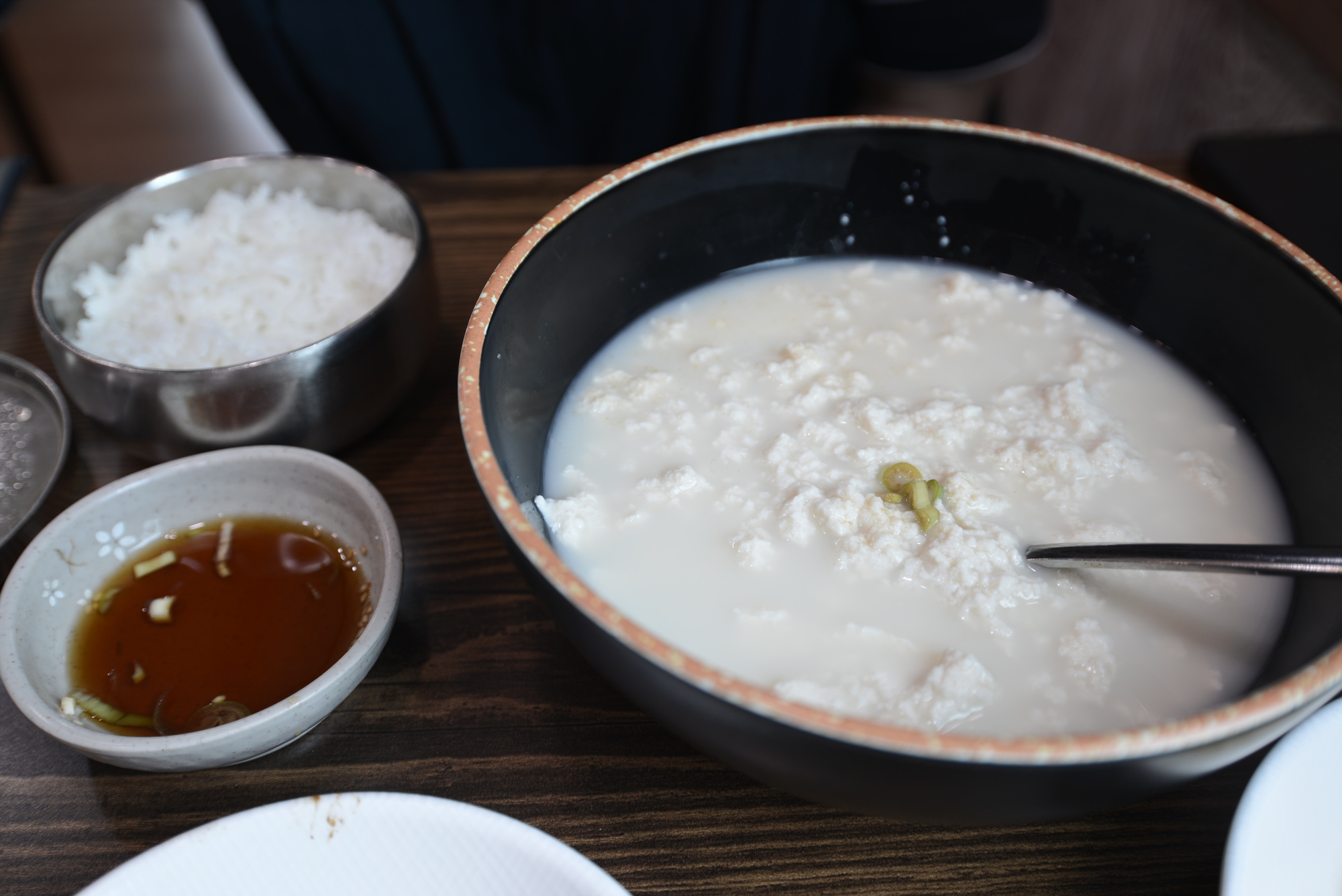 - 하얀 순두부에 밥을 1/3정도 말아서 먹는다.