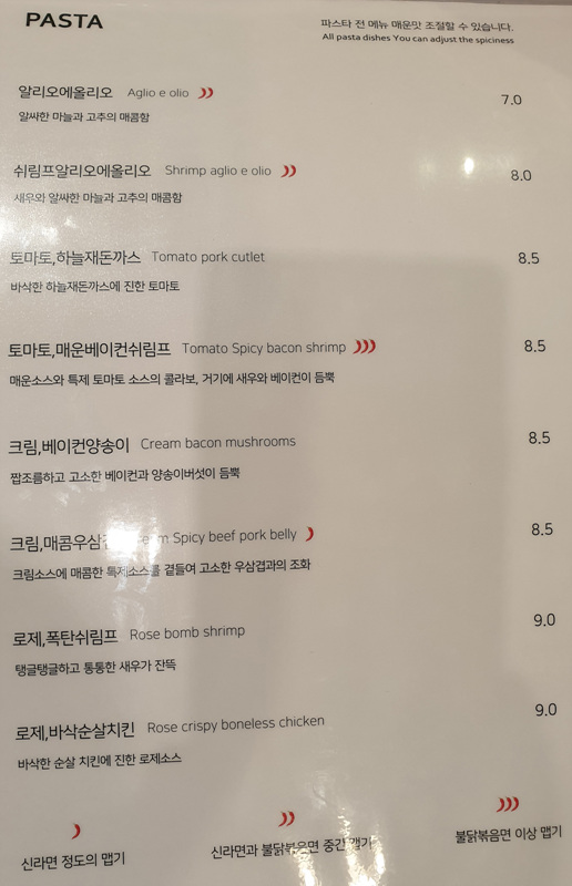 참고로 파스타 전 메뉴는 매운맛 조절이 가능합니다.