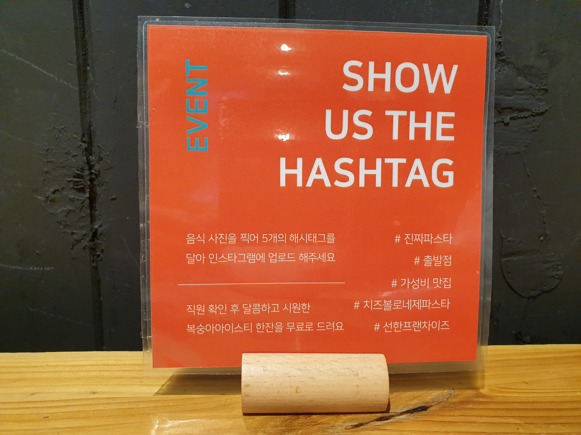 해시태그로 #진짜파스타 #출발점 #가성비맛집 #치즈볼레네제파스타 #선한프랜차이즈 를 달아야 합니다.