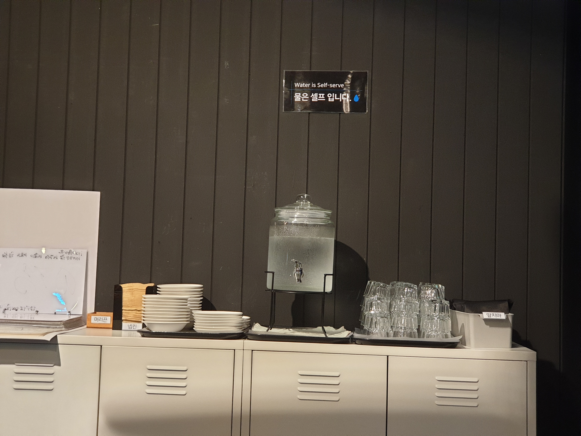 물, 개인접시, 앞지마, 냅킨 등 이용 가능합니다.