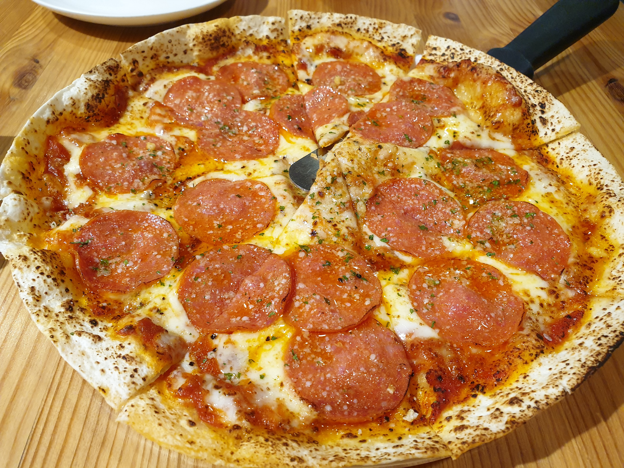가장 먼저나온 피자세트의 페퍼로니 피자 입니다 / 12,000원 + 500원