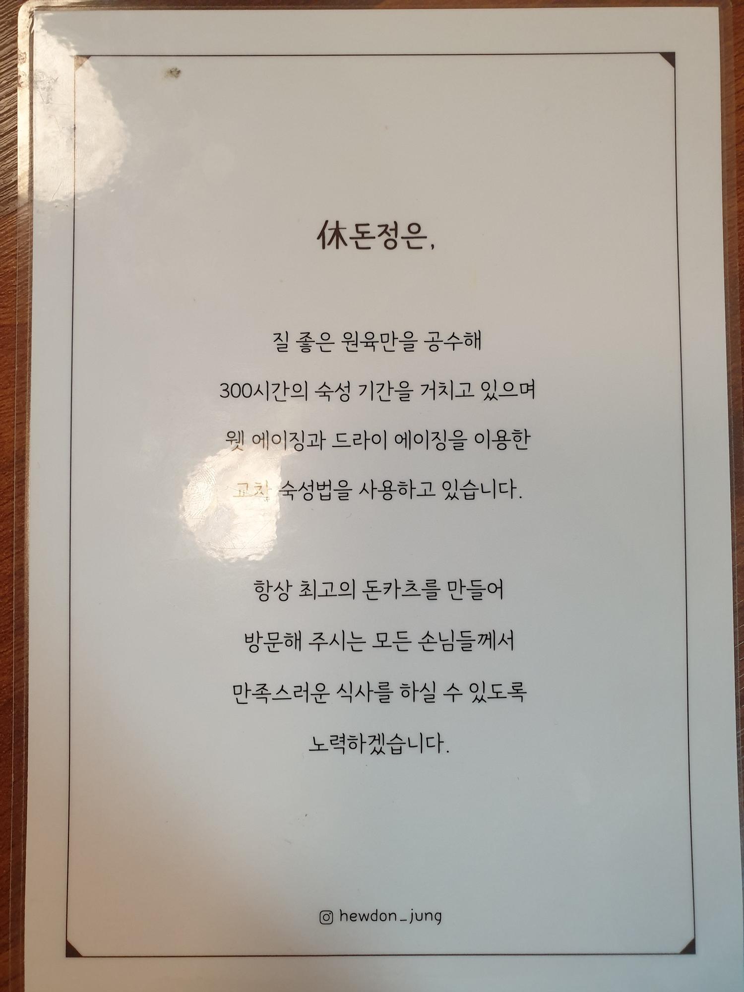 노란색으로 휴돈정 돈가스 라고 적혀 있습니다.