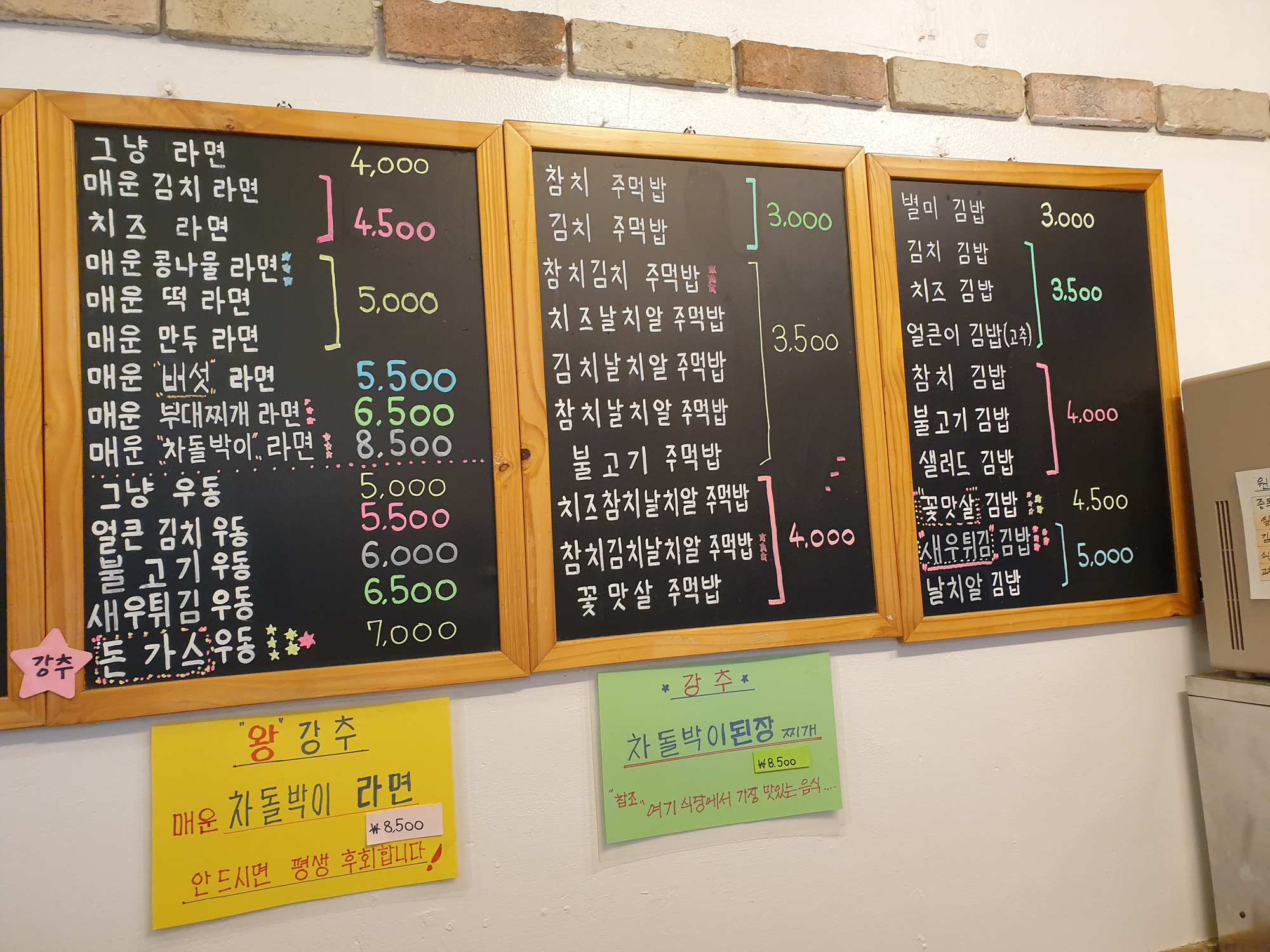 라면류 4,000원~8,500원