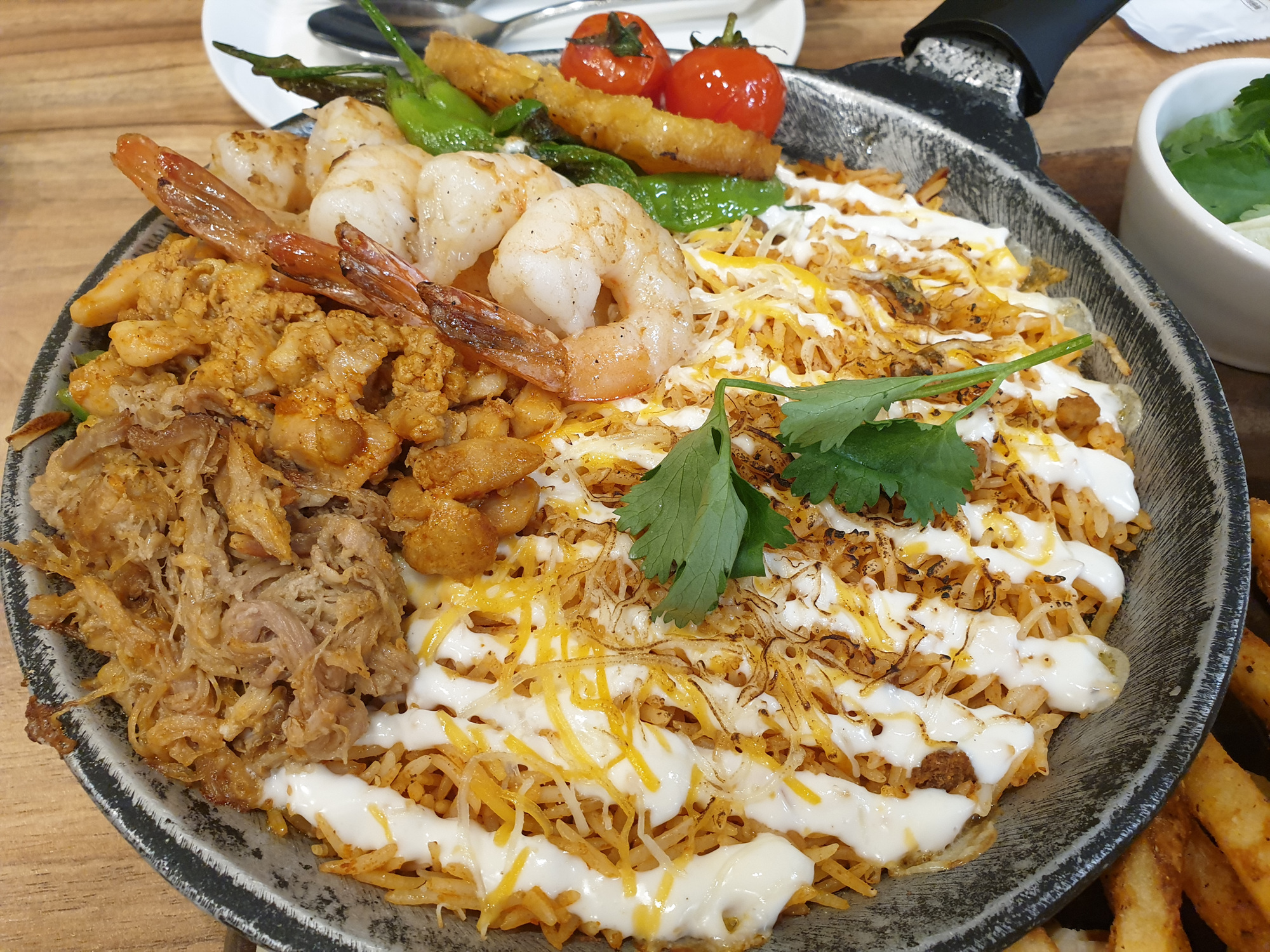 인도쌀로 지어진 밥에 고기, 치킨, 새우, 고추 등의 채소가 볶아져 나옵니다.