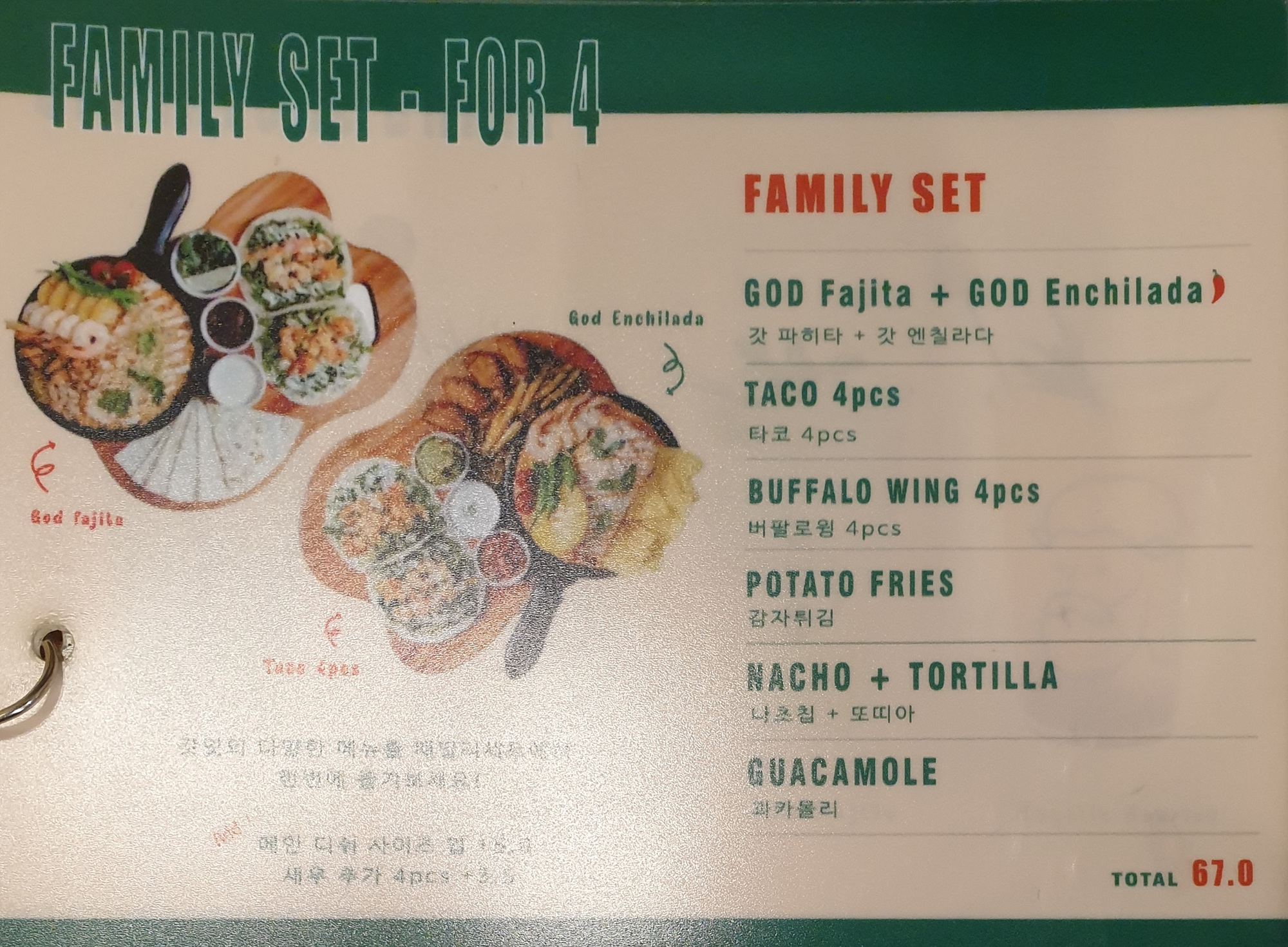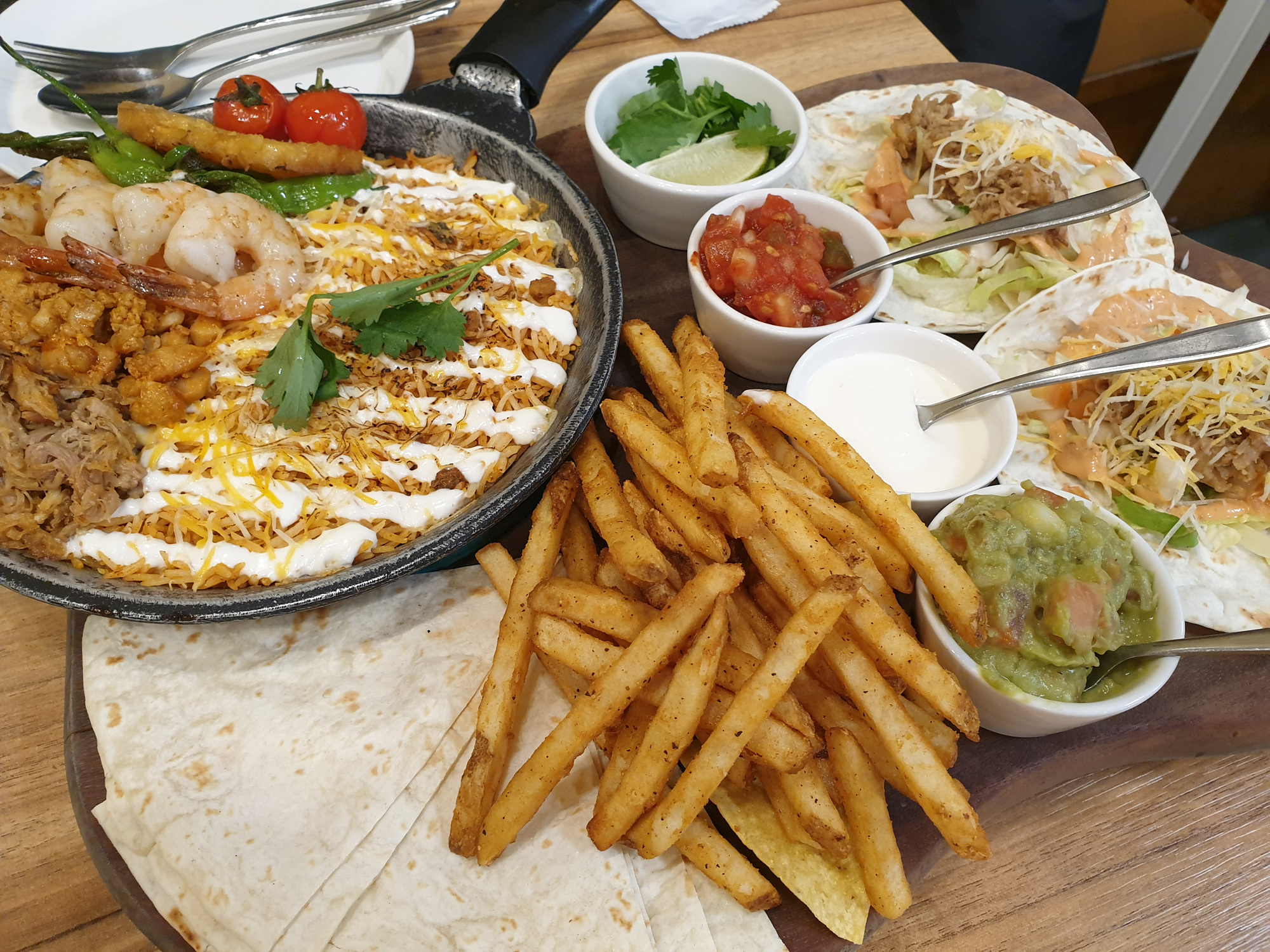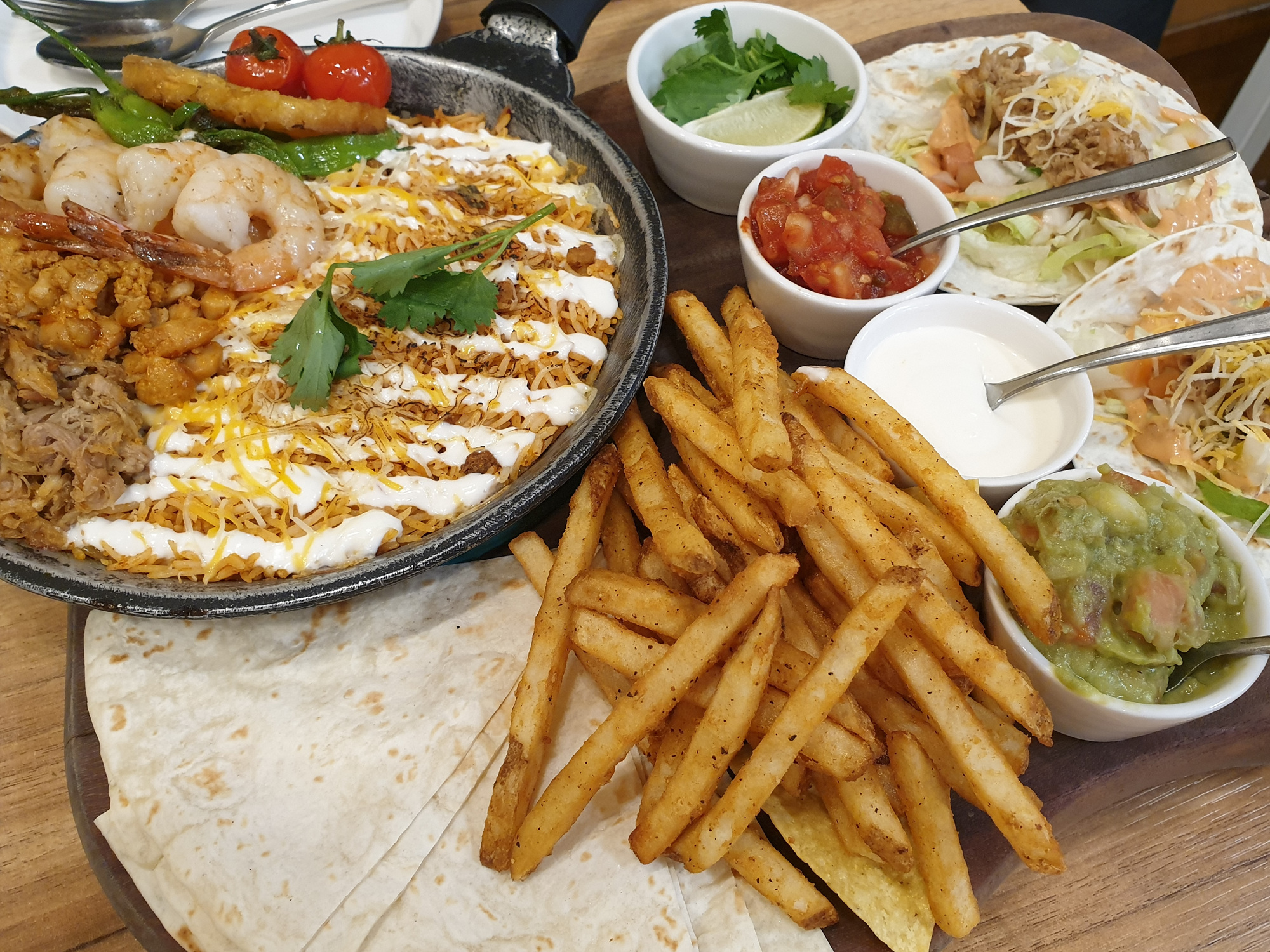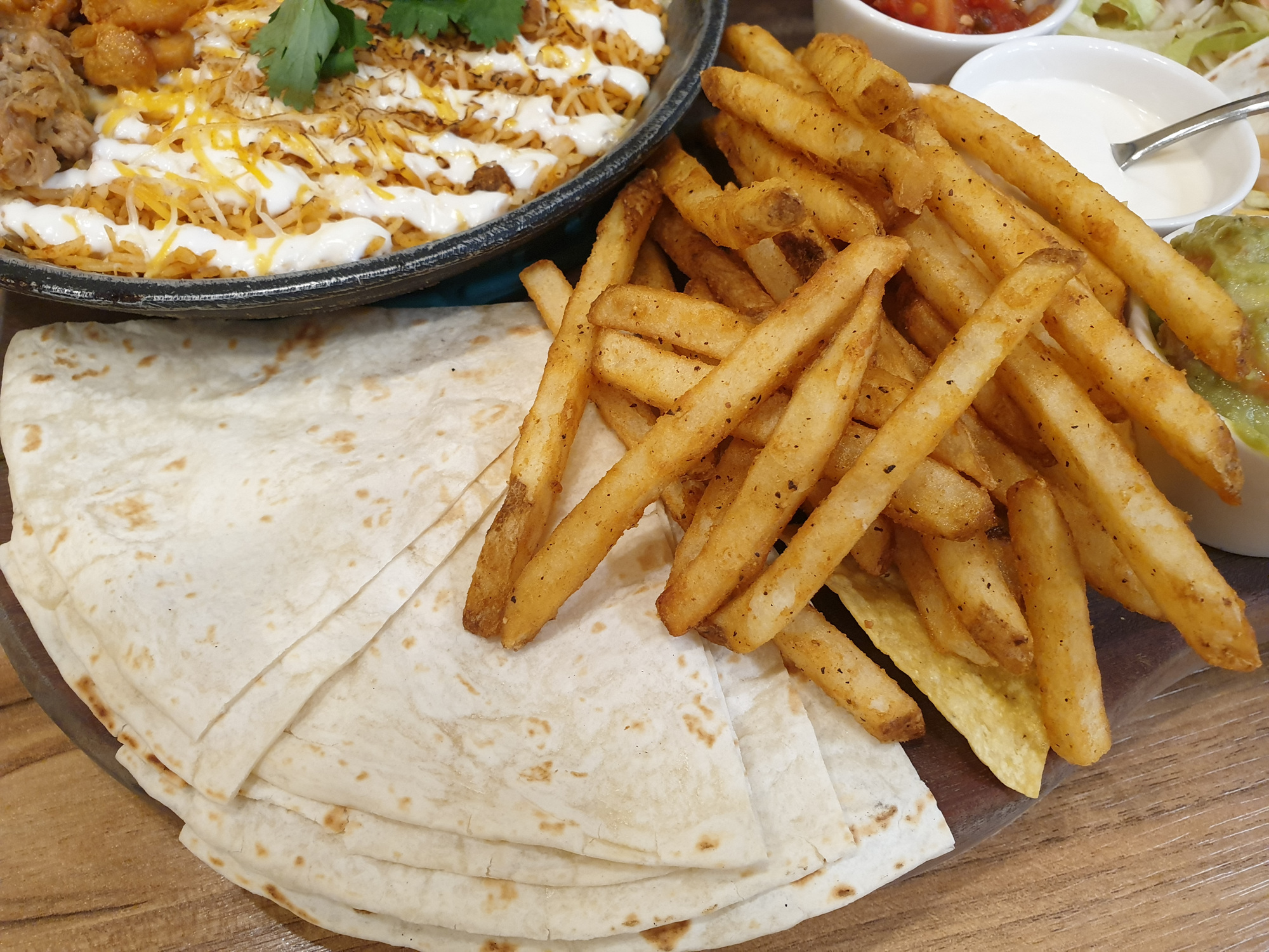 파히타 + 타코2 + 감자튀김 + 나초 + 또띠아 + 과카몰리소스 등