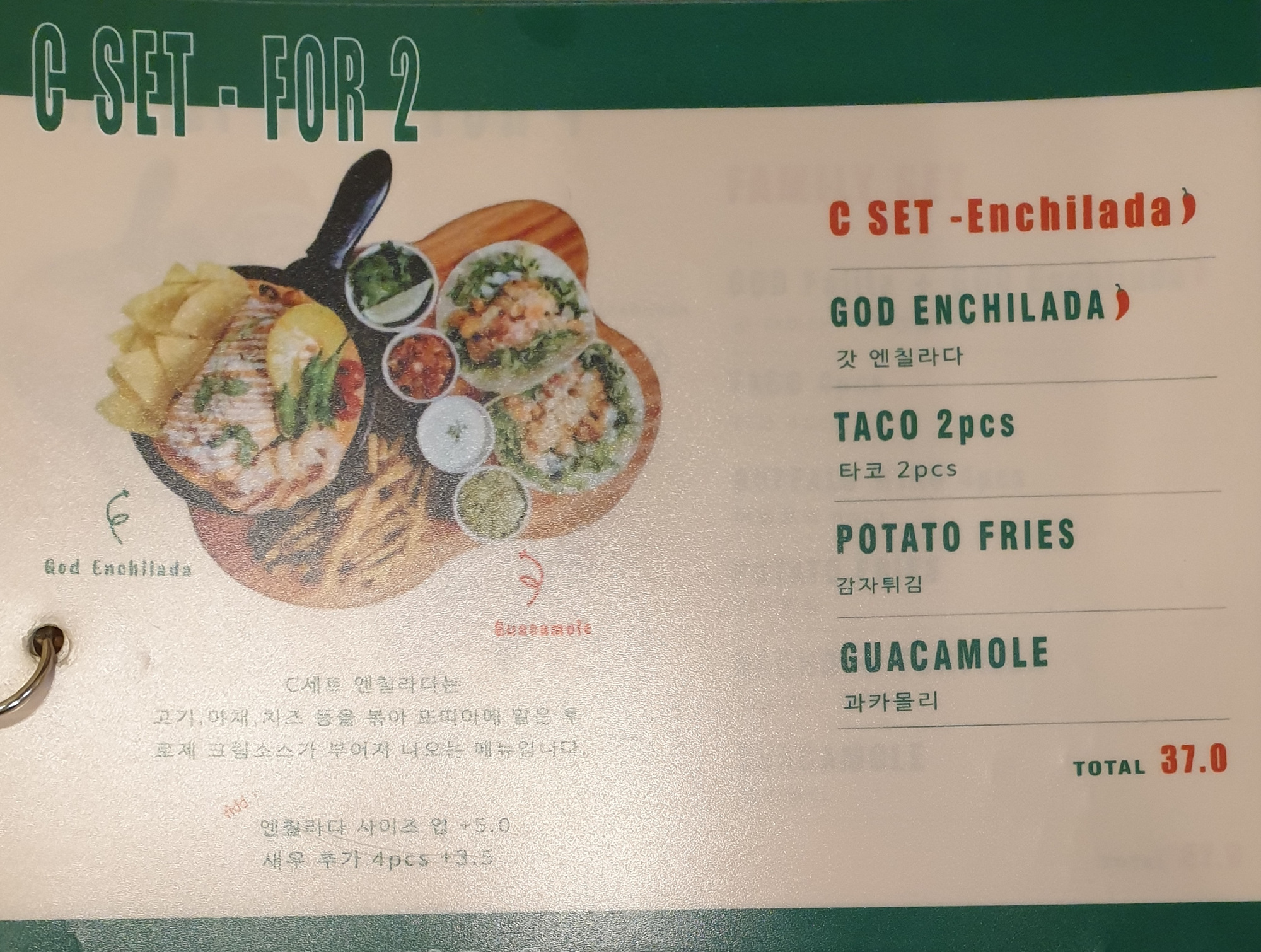 화이타, 엔칠라다 등 메인디시는 세트가 아닌 단품으로도 주문이 가능합니다.