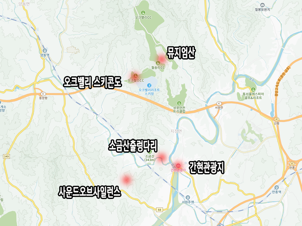 오크벨리, 뮤지엄산, 간헌유원지, 소금산 출렁다리 등의 관광 시설이 근처에 있고