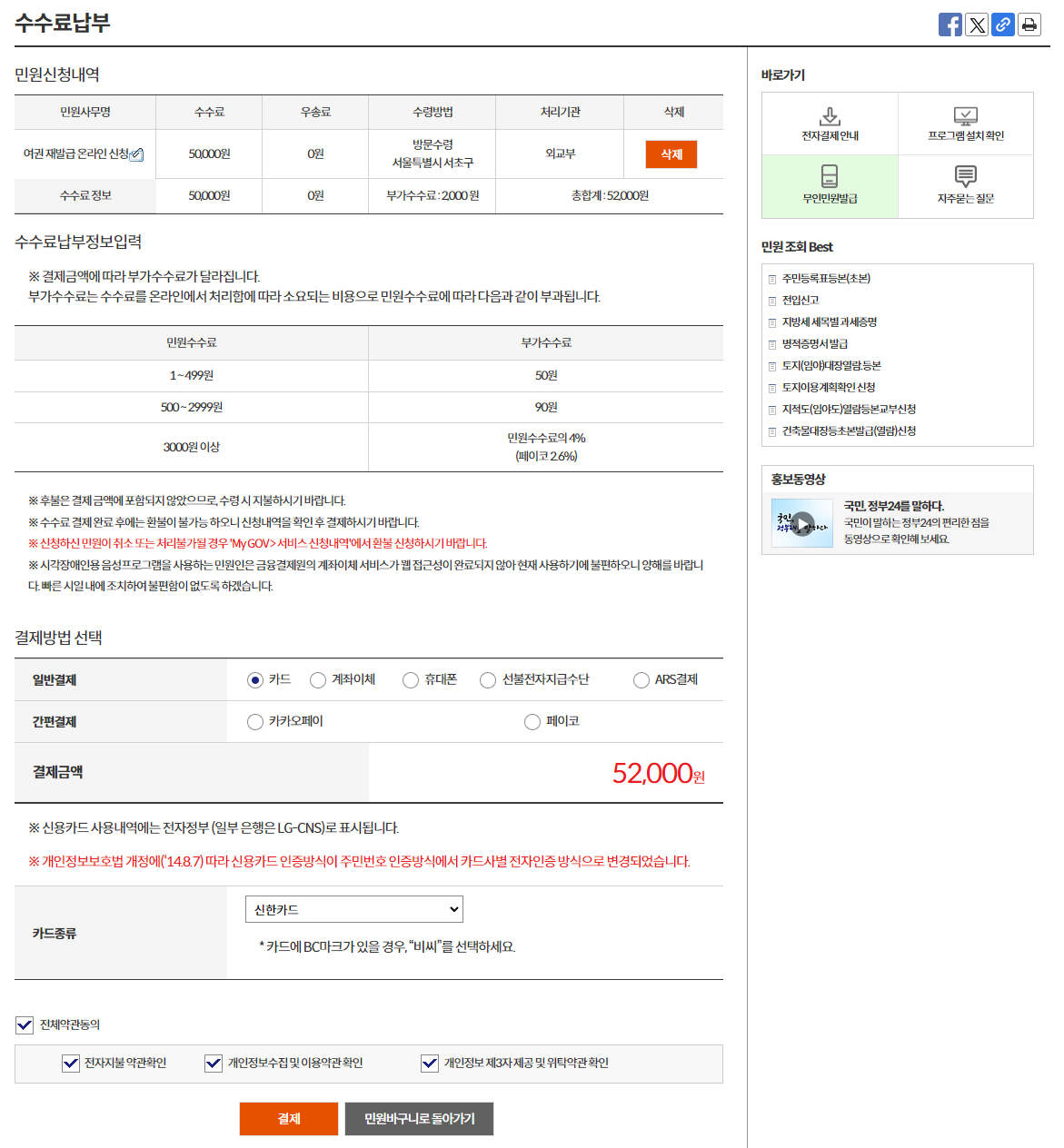 5. 신청 내용 확인 및 수수료 결제