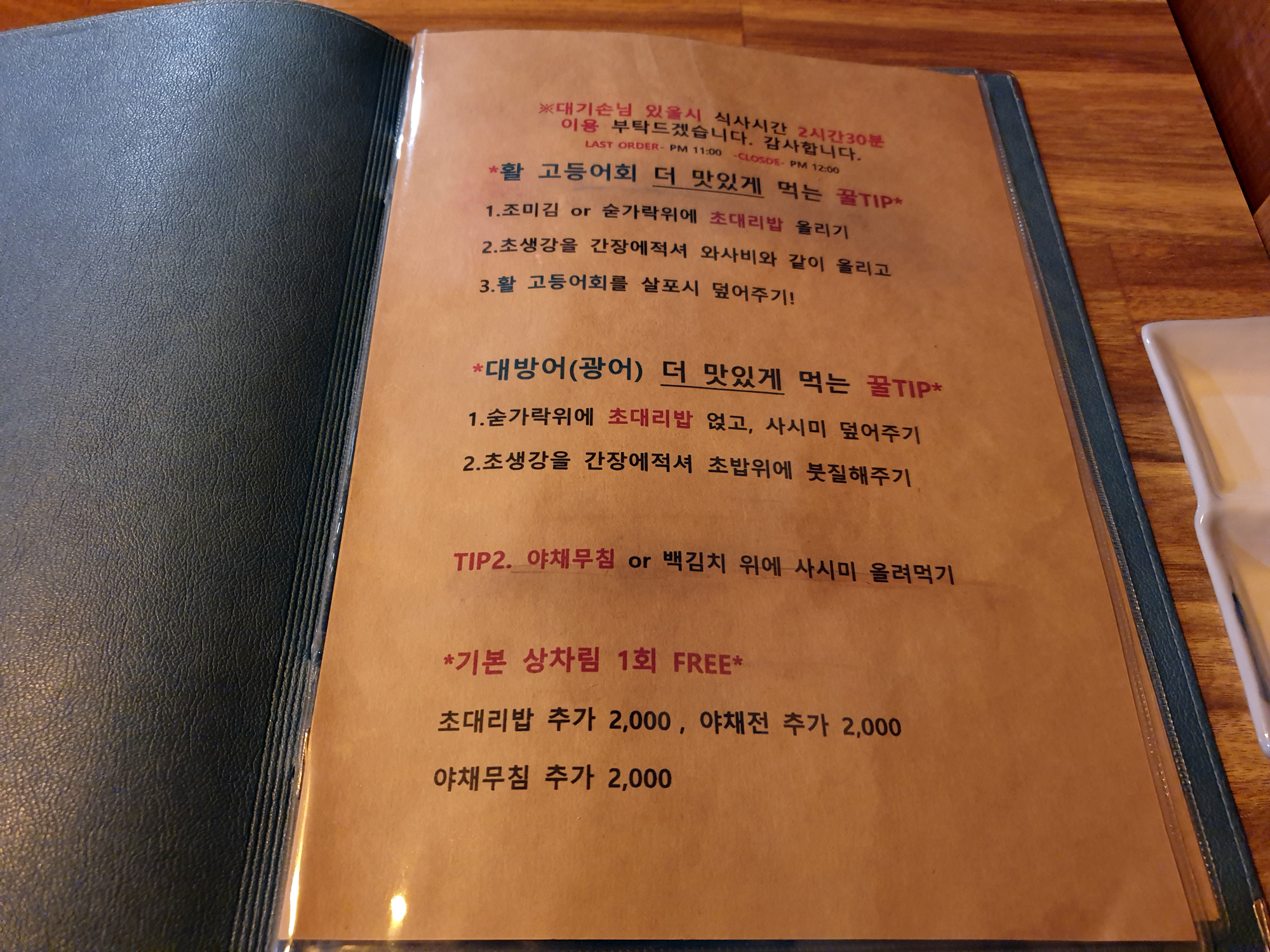 야채전, 맨초밥, 야채무침 추가 주문시 2000원