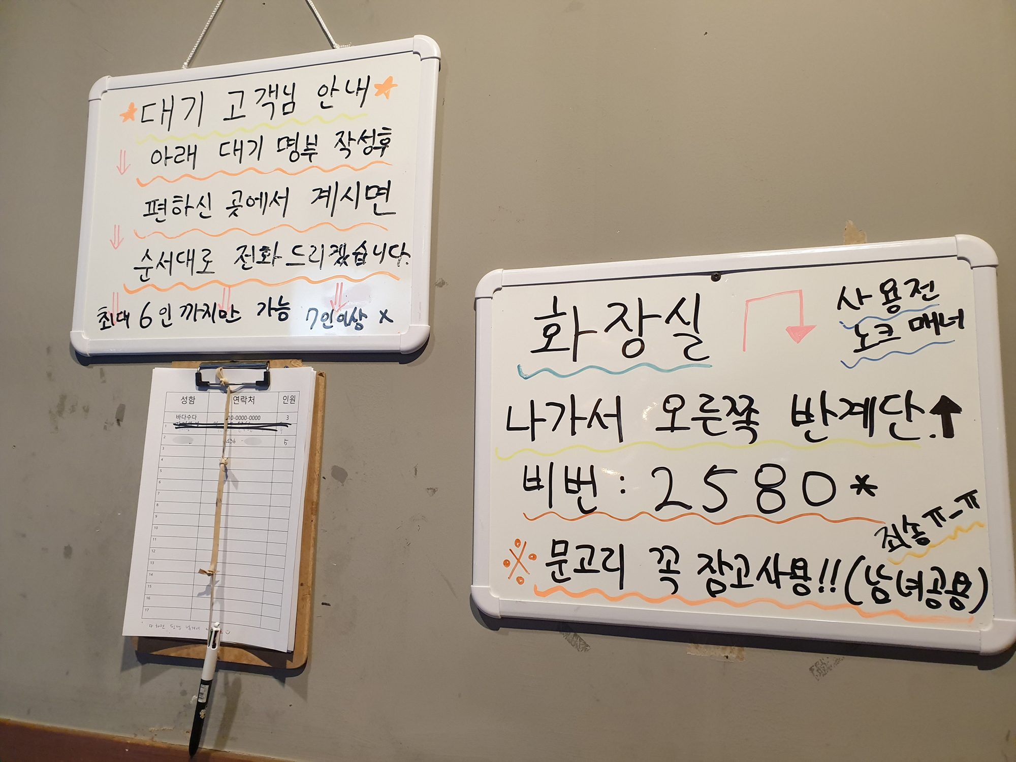 대기 고객은 명부를 작성해야 합니다.