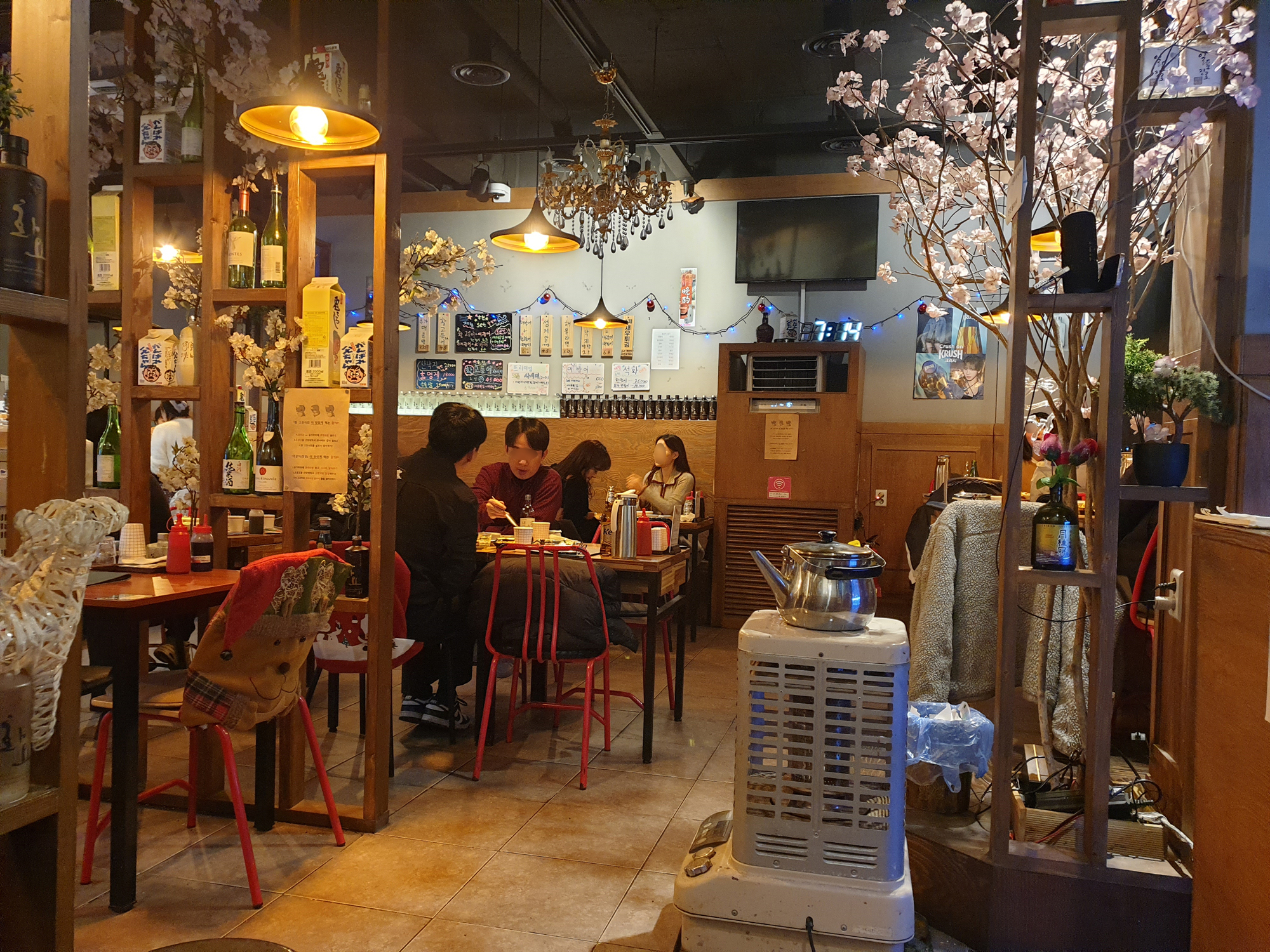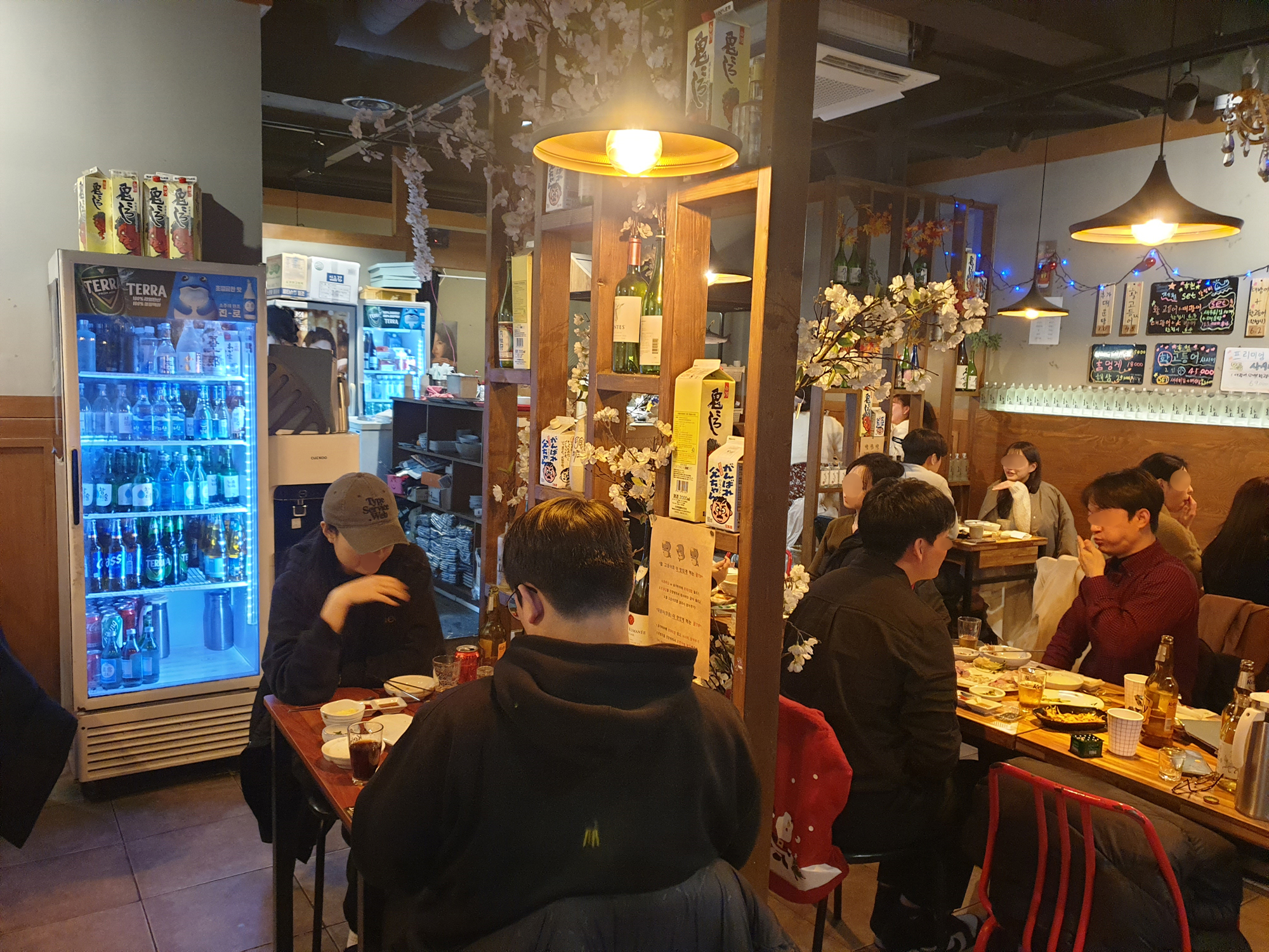 벗꽃나무도 있고, 천장에 샹들리에도 있고, 약간 일본 주점 느낌도 나도 그렇습니다.