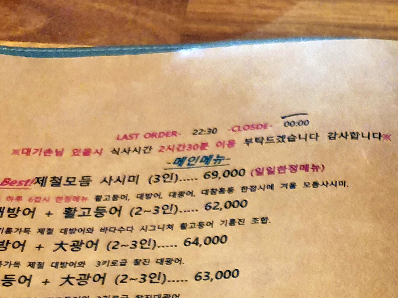 모듬 사시미는 한정판매이기 때문에 거의 오픈런을 해야 먹을 수 있지 않을까 싶습니다.