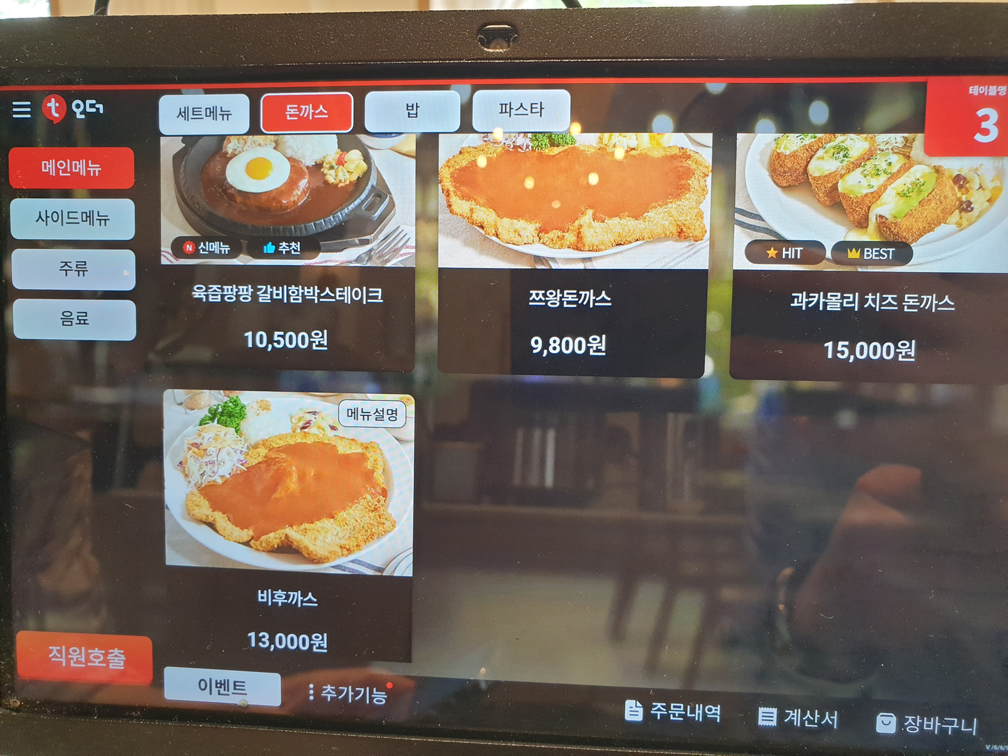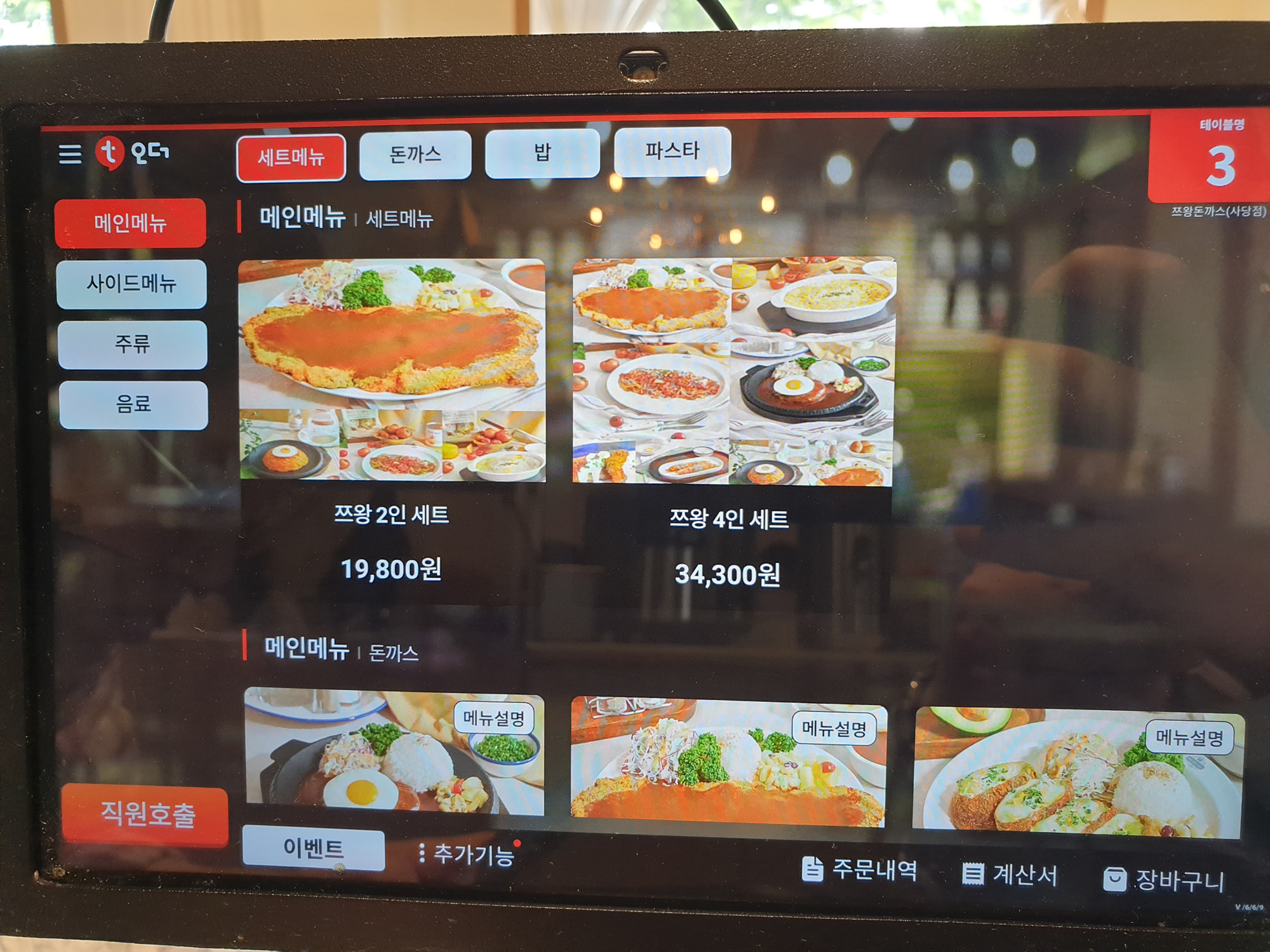 주문은 각 테이블에 설치된 테이블오더를 이용하면 되고,