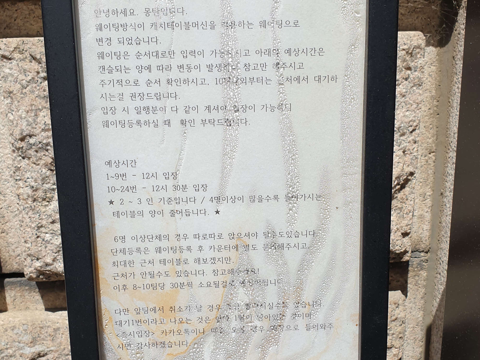 캐치테이블을 이용하여 웨이팅대기를 걸었습니다.