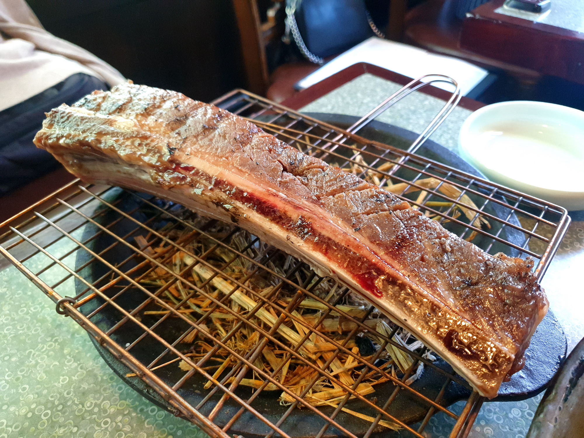 잘 구워진 갈비는 오버쿡 되지 않고 마르지 않게 갈빗대 위에 올려줍니다.