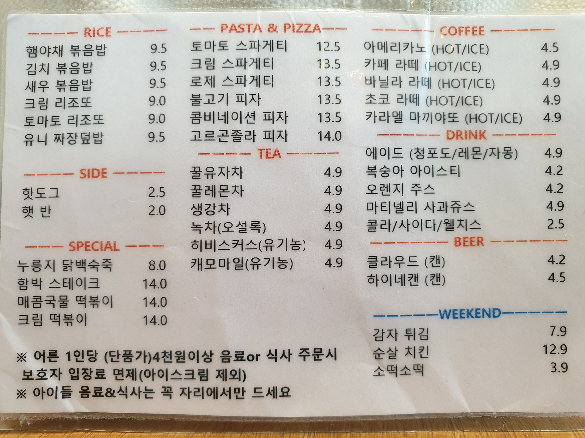 키즈카페 음료 가격