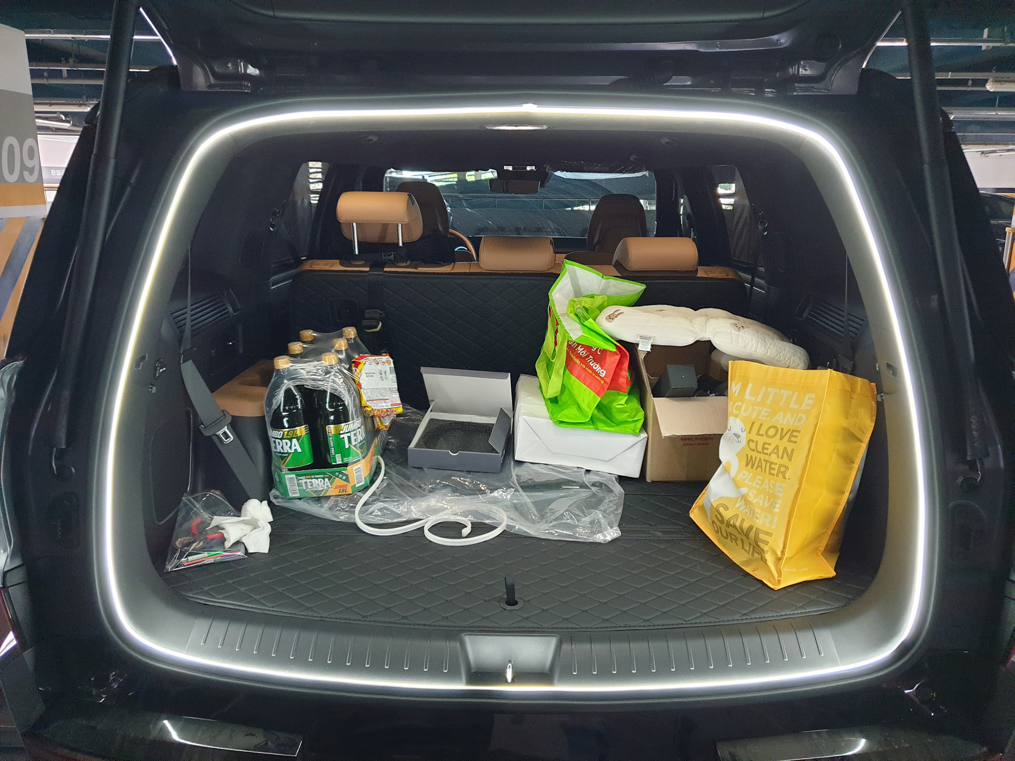 트렁크 틈새를 슬쩍 벌리고 LED바를 열심히 밀어 넣어줌