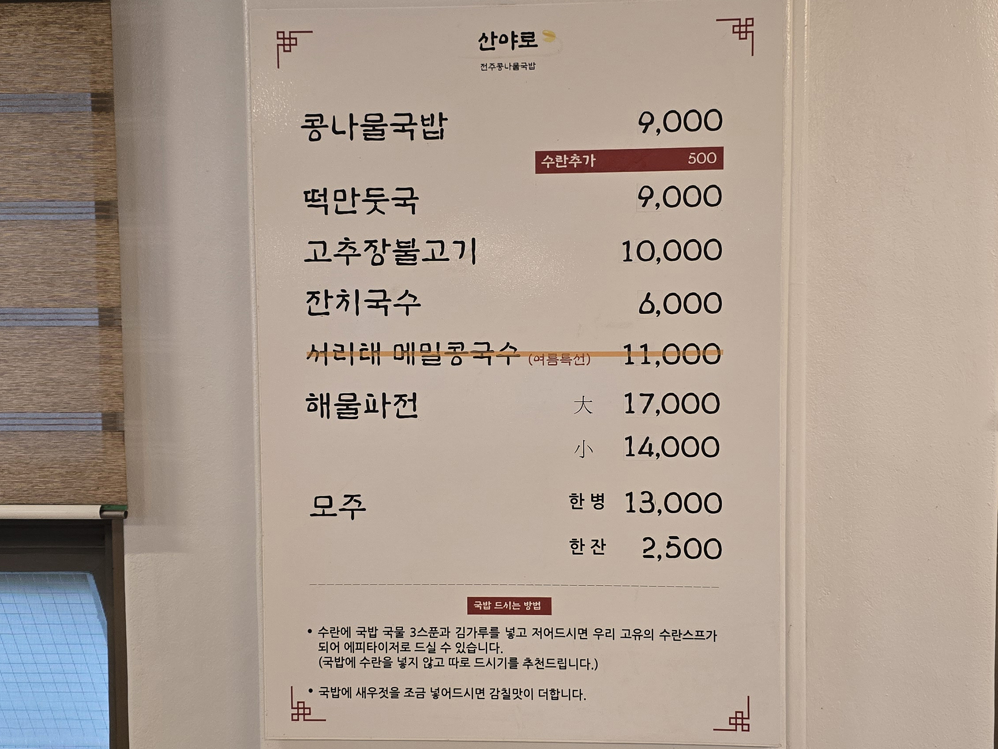 말끔하게 먹고 싶을 때는 산야로 콩나물국밥이 제격입니다.