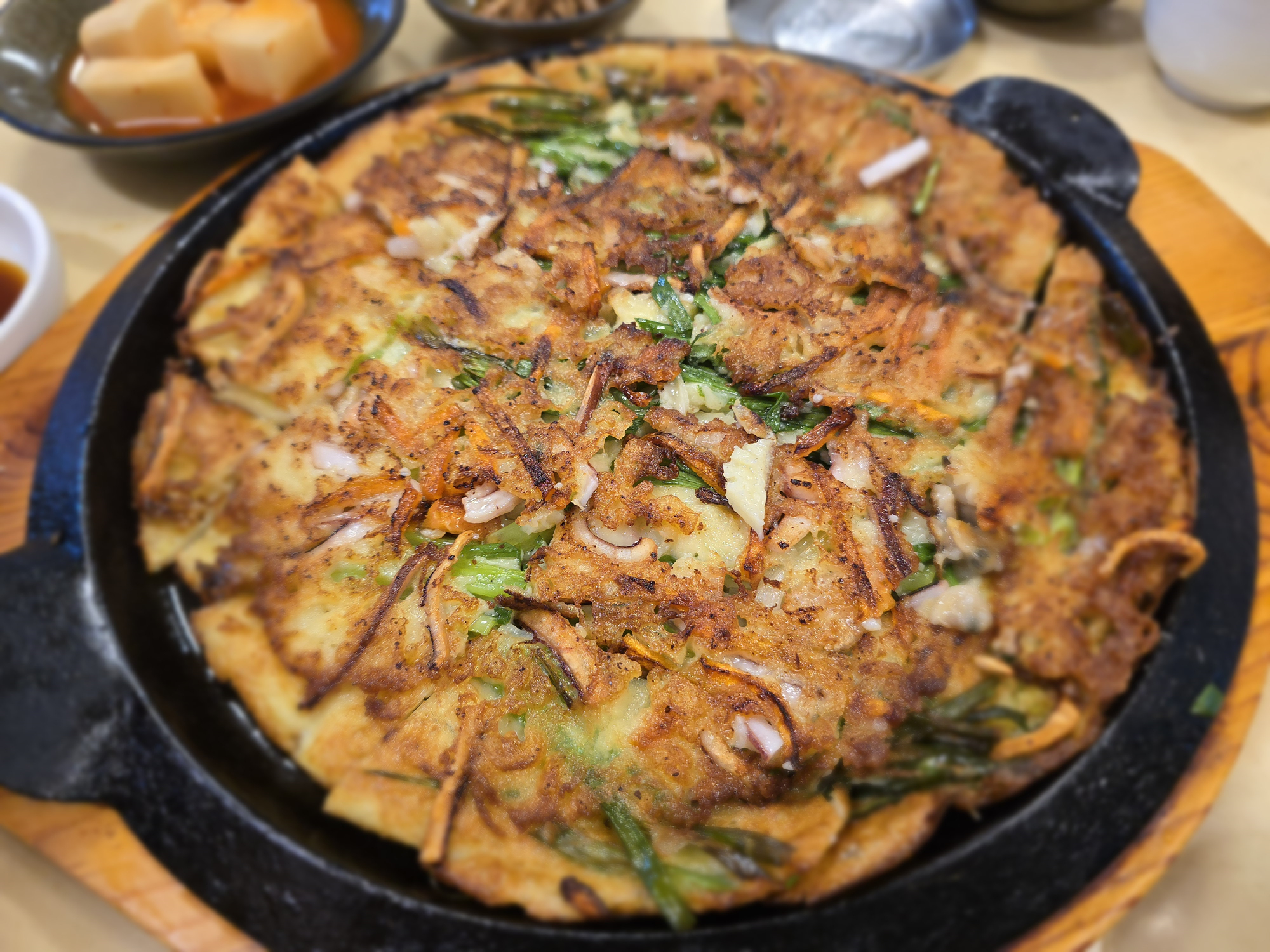 해물파전은 반찬으로 나온 양파절임과 함께 먹으면 맛있습니다.