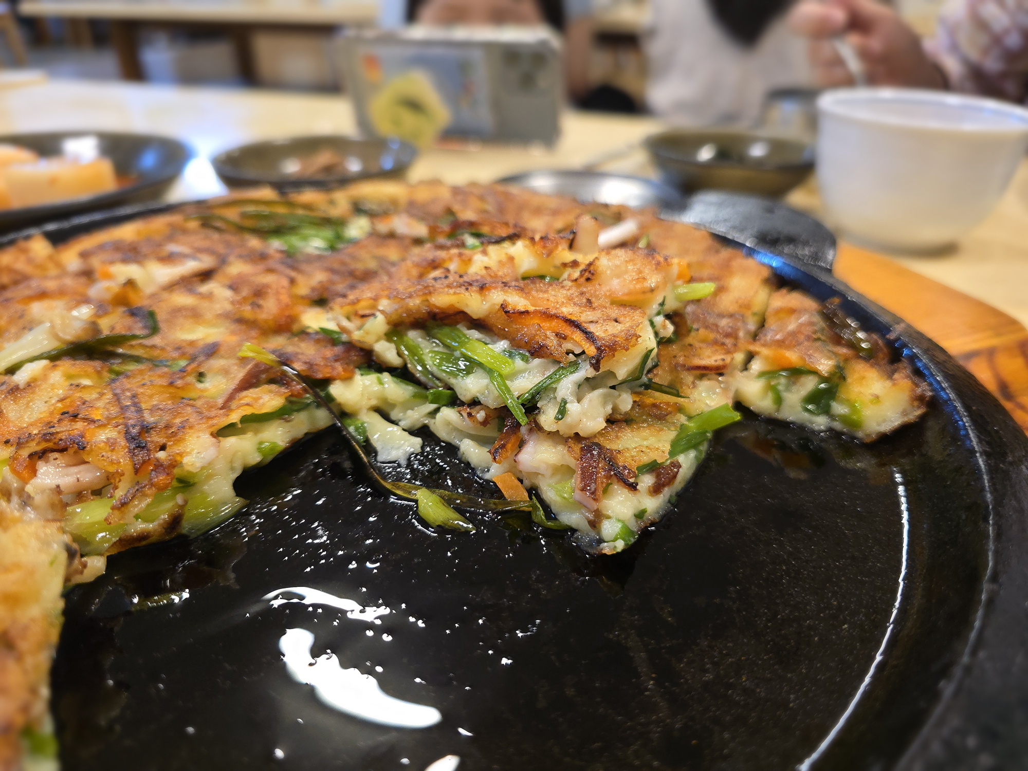 해물파전을 덜고 나니 팬 위에 기름이 흥건히 보이기는 했지만