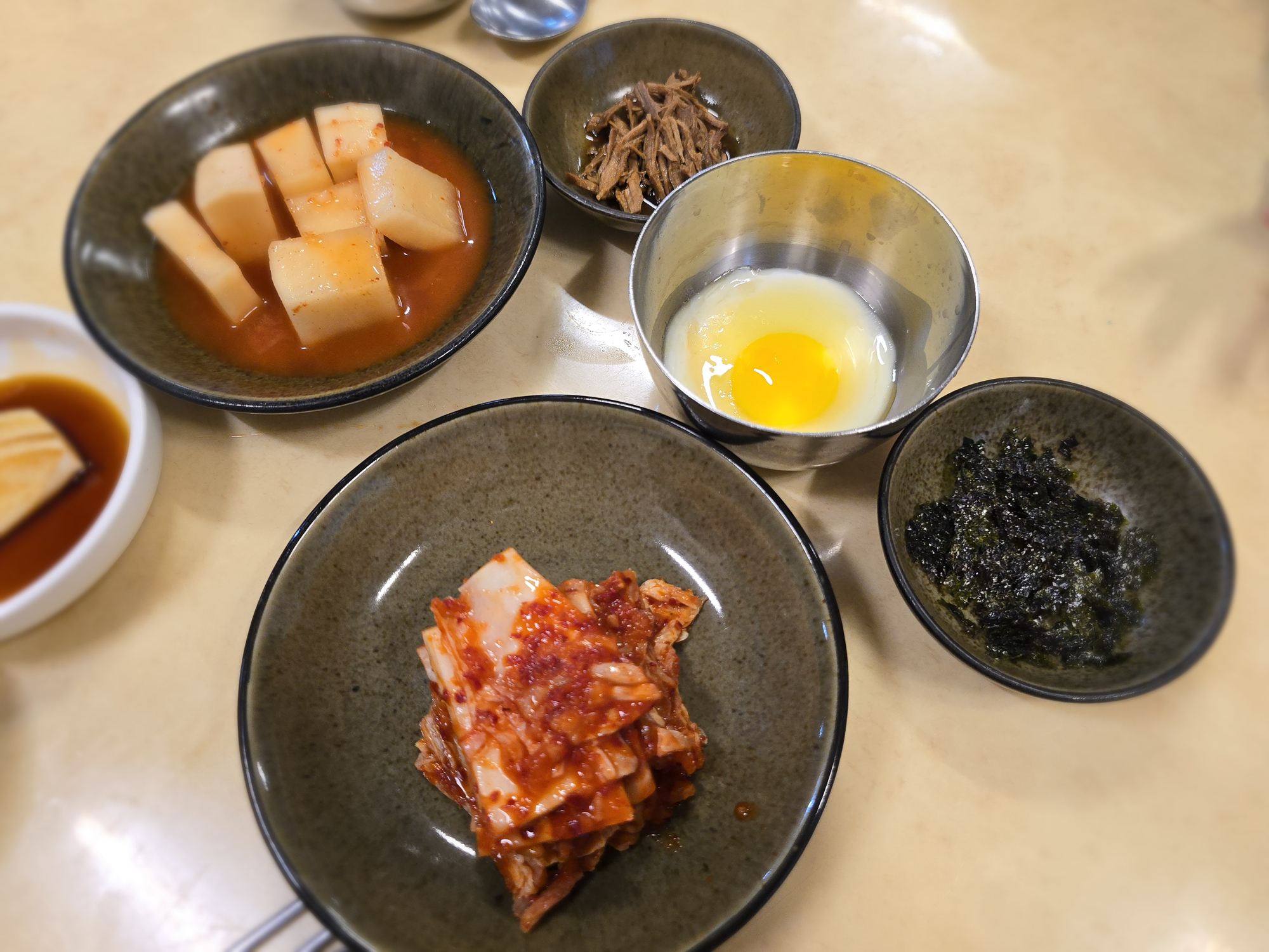 공기밥은 따로 나오지 않는데 이미 뚝배기 안에 밥이 자리잡고 있습니다.